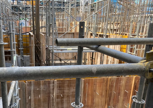 他の職種がスムーズに仕事出来るよう工事の最初に現場に入り、高いところに足場をつくったり、図面通りにコンクリート構造物をつくるための支えをつくったりなど、多種多様な仕事をします。