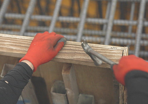 図面通りの形にコンクリートが仕上がるように、主に木材で型枠をつくる仕事です。